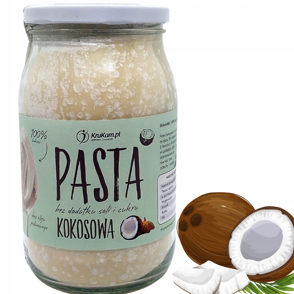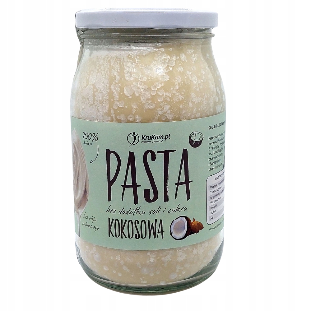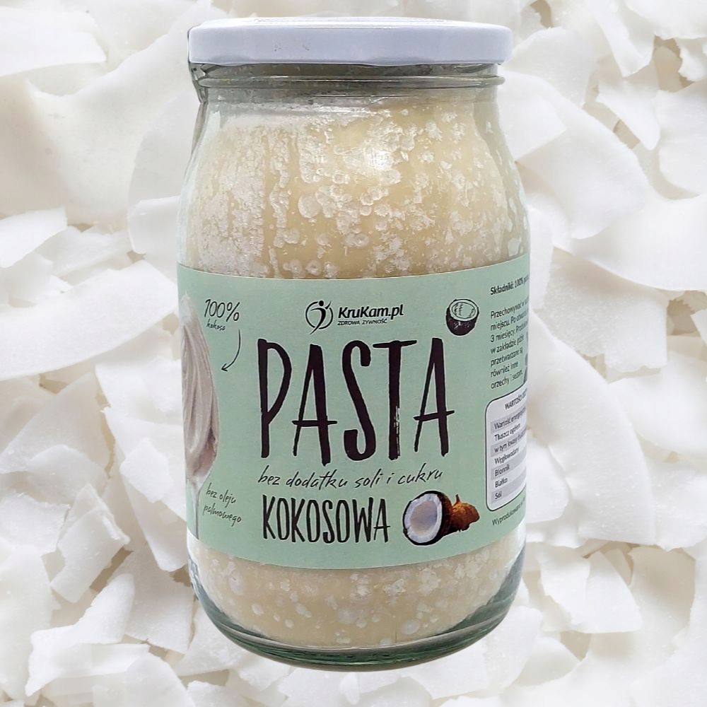 Pasta kokosowa Krukam to naturalne masło kokosowe stworzone ze zmielonego miąższu kokosowego. Pasta to 100% produkt naturalny, bez dodatku cukru, soli, oleju palmowego i konserwantów. Produkt został zaprojektowany dla osób dbających o dietę.