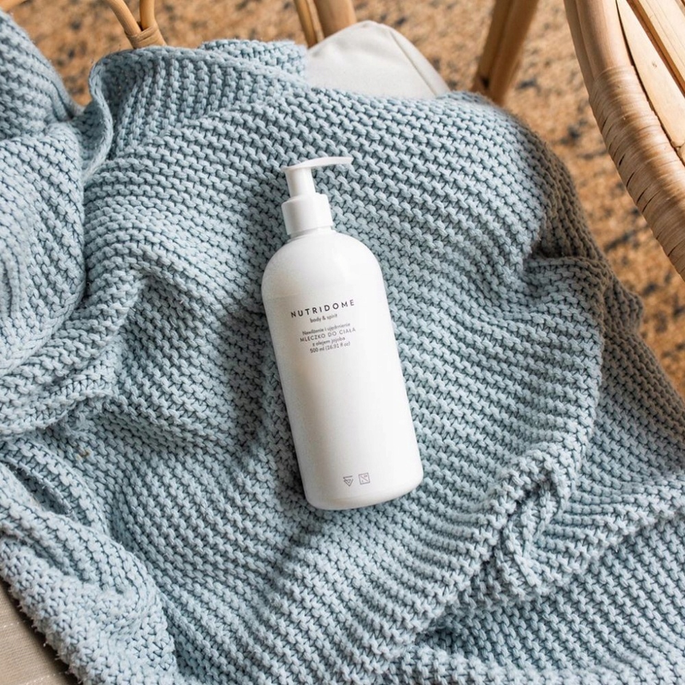Mleczko do ciała Nutridome przywraca naturalne pH, przyspieszając regenerację skóry.