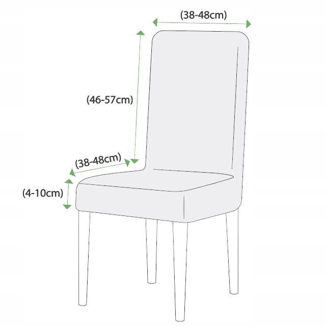 Nie musisz martwić się kształtem oparcia- nasze pokrowce pasują na wszystkie krzesła, których wymiary zgodne są z zamieszczonymi poniżej;