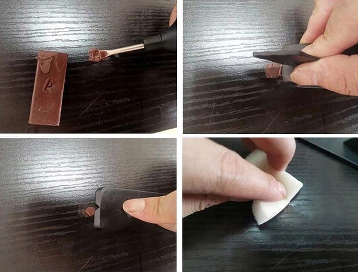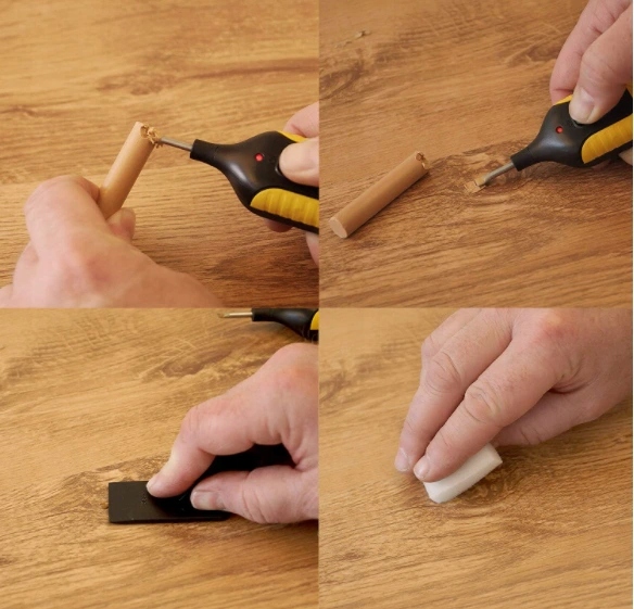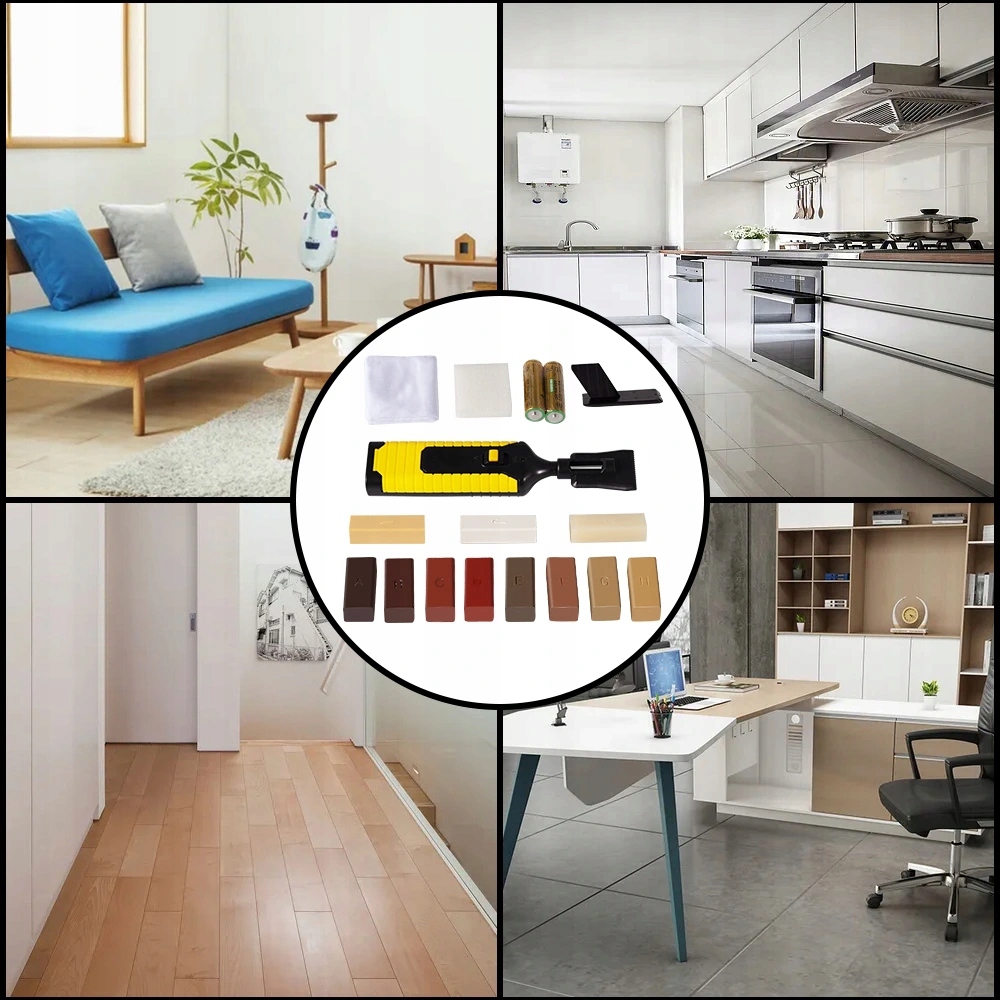 Zestaw umożliwia samodzielną naprawę uszkodzeń na powierzchniach drewnianych oraz drewnopodobnych. Można nim również naprawić uszkodzenia na powierzchniach kamienno-ceramicznych. Wosk w zestawie naprawia głębokie rysy, pęknięcia, nawiercone otwory, wyszczerbienia czy otarcia. Pałki wosku w 11 kolorach sprawią, że dzięki nim dobierzesz idealny kolor do naprawianego np. przetarcia. Warto zaznaczyć, że woski można ze sobą mieszać aż do uzyskania odpowiedniego koloru. Wypełni on ubytek a po wyschnięciu zapewni ochronę dla twojego naprawianego przedmiotu.