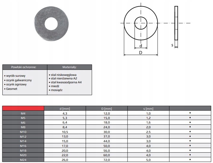 Podkładki poszerzane pełnią rolę separatora, który izoluje łeb śruby lub nakrętki od łączonego materiału – dzięki niemu mocowane elementy nie niszczą się podczas dokręcania złączy ze znaczną siłą. Podkładka ma szeroki brzeg, co umożliwia lepsze rozłożenie się sił, które dokręcają śrubę. Została wykonana z ocynkowanej stali, dzięki czemu jest odporna na rdzewienie.