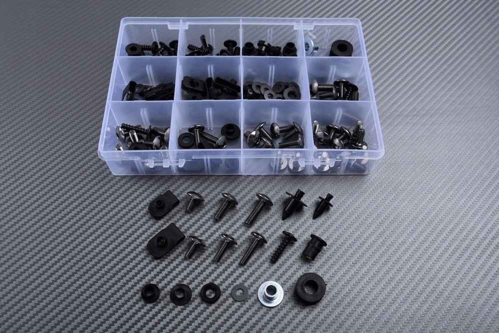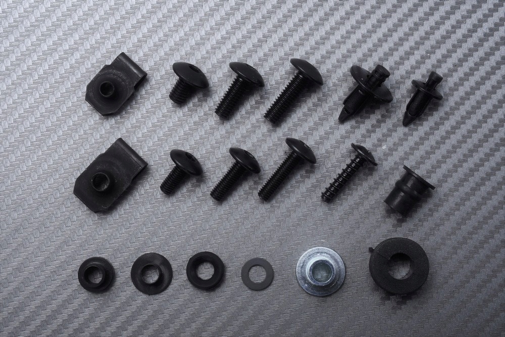 Ten zestaw sprzętowy składa się ze wszystkich śrub, nakrętek, podkładek i klipsów, które mogą być potrzebne do założenia owiewek. Kompletny i ponumerowany opis, zawierający listę wszystkich części podanych w tym zestawie i wskazujący, gdzie można ich używać na motocyklu, jest dostarczany dla Twojej wygody.