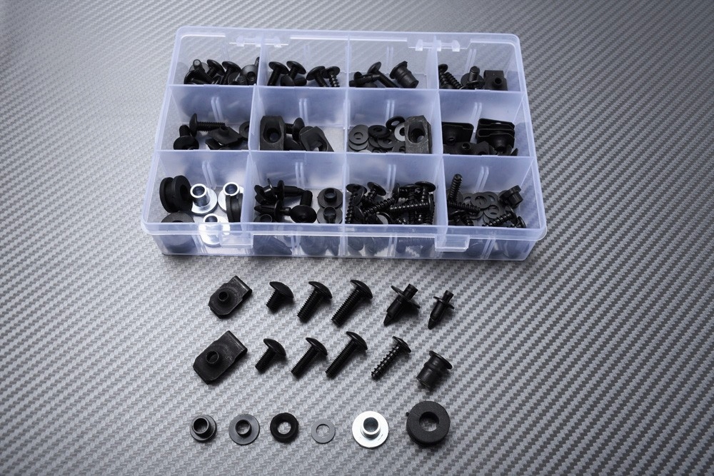 Ten zestaw sprzętowy składa się ze wszystkich śrub, nakrętek, podkładek i klipsów, które mogą być potrzebne do założenia owiewek. Kompletny i ponumerowany opis, zawierający listę wszystkich części podanych w tym zestawie i wskazujący, gdzie można ich używać na motocyklu, jest dostarczany dla Twojej wygody.