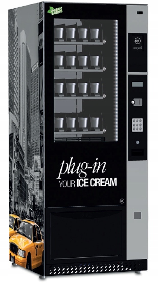 Automat do lodów skonstruowany jest na zasadzie spiral, w pełni konfigurowany.