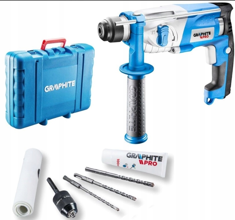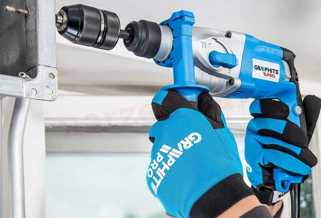 Młotowiertarka 59GP500 Graphite Pro służy do wiercenia w drewnie i metalu, a także do wiercenia z udarem w betonie. Sprawdzi się przy montażu zabudowy czy wierceniu otworów pod kołki rozporowe. Urządzenie jest dedykowane profesjonalistom.
