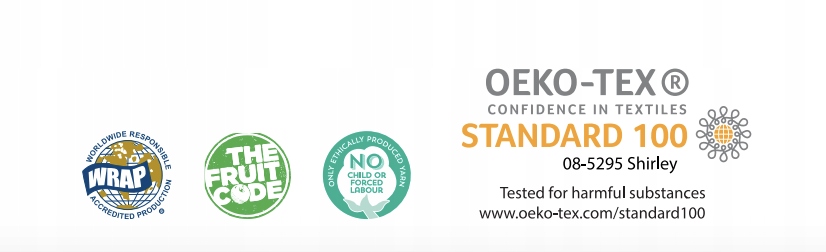 * Heather Grey: 97% bawełny, 3% poliestru.