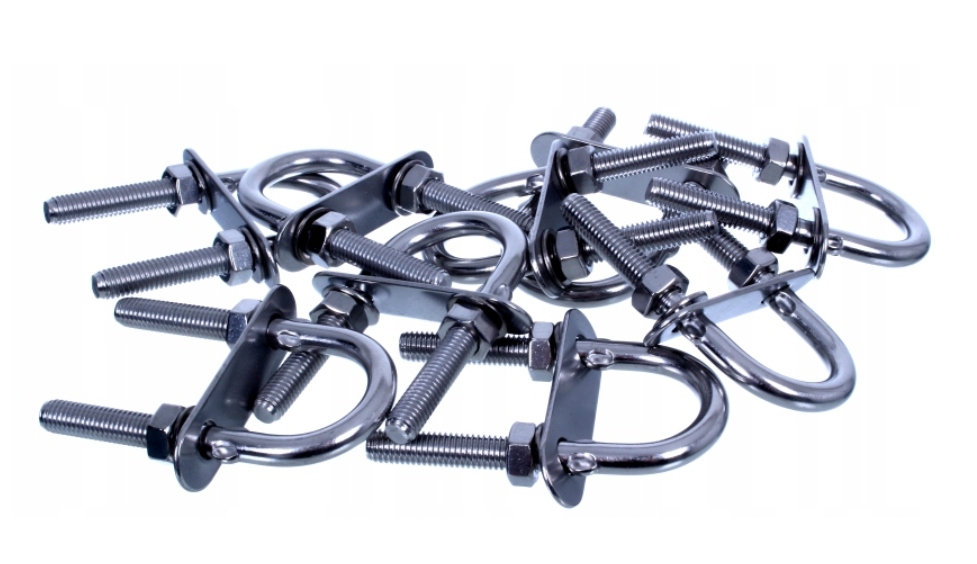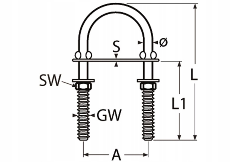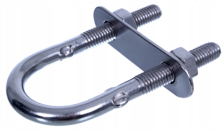 Obejma śrubowa w kształcie litery U wykonana ze stali nierdzewnej. Służy do mocowania elementów na masztach i rurach.