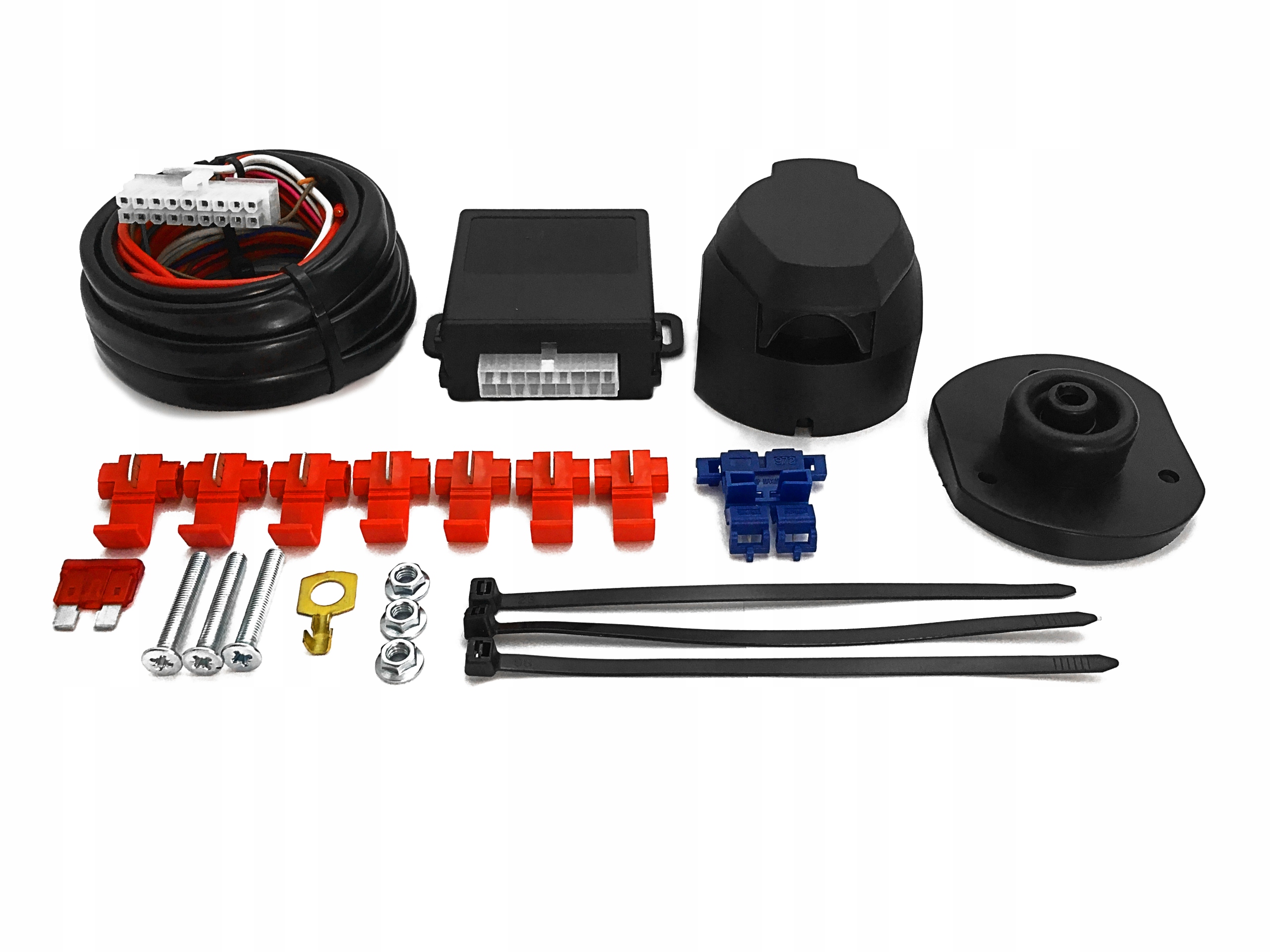 Uniwersalny moduł z rozbudowaną wiązką elektryczną i gniazdem. Zestaw elektryczny cechuje łatwy montaż, wszystkie przewody do modułu wpinane są za pomocą jednej rozbudowanej kostki.