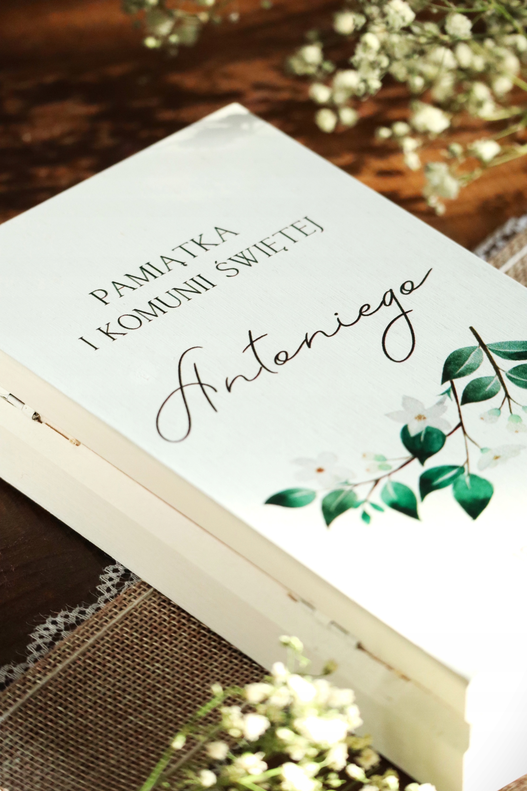 Pudełko dekorujemy elegancką komunijną wstążką!