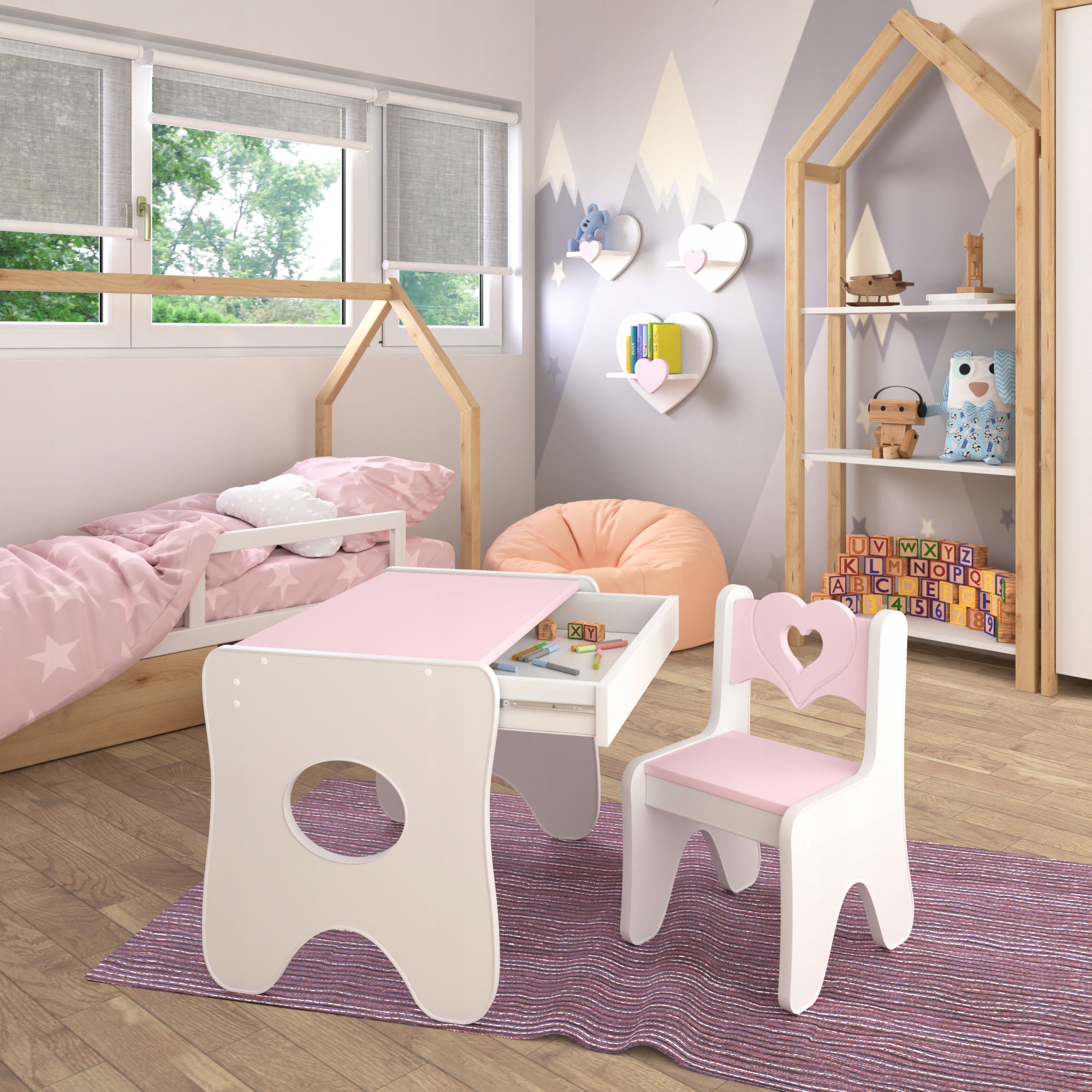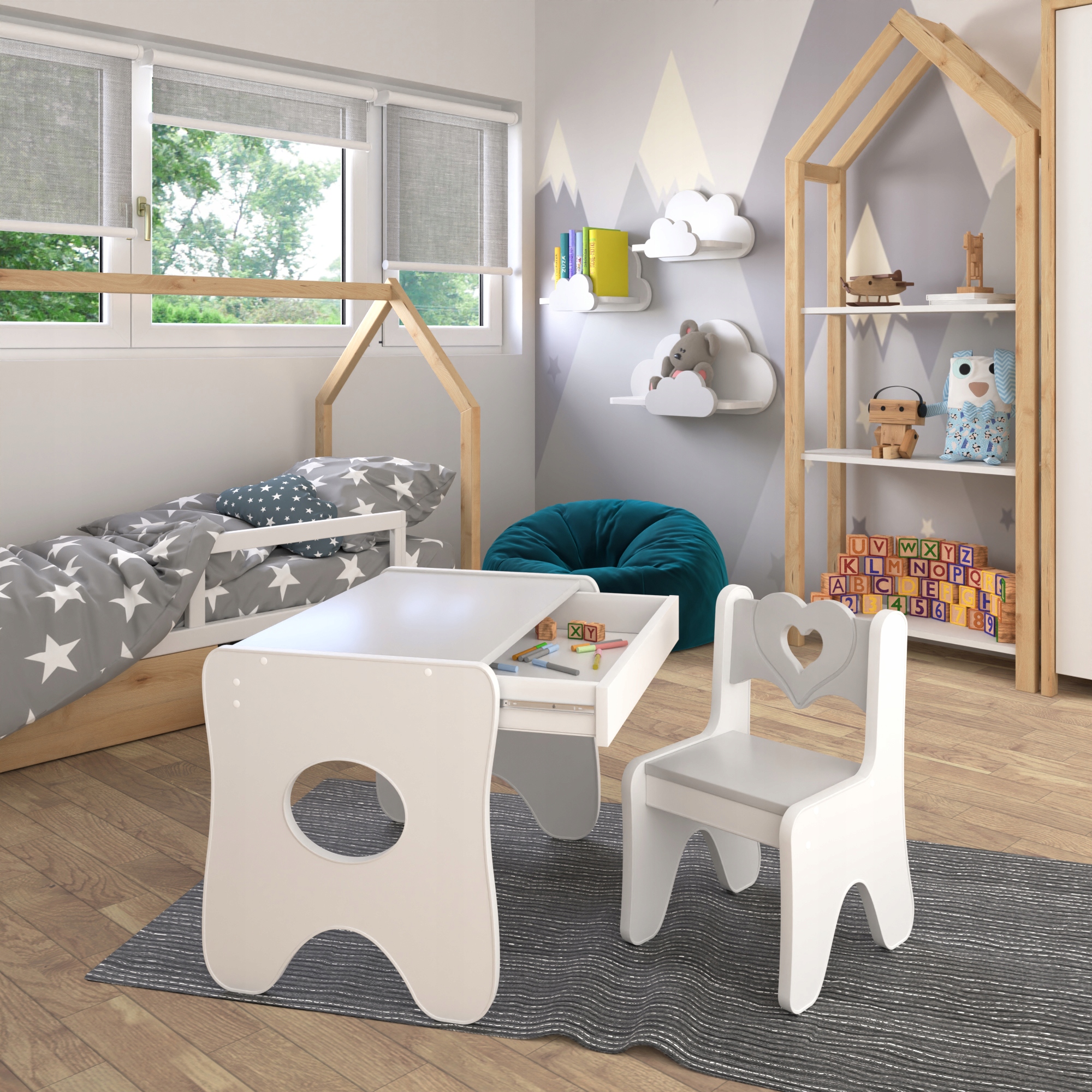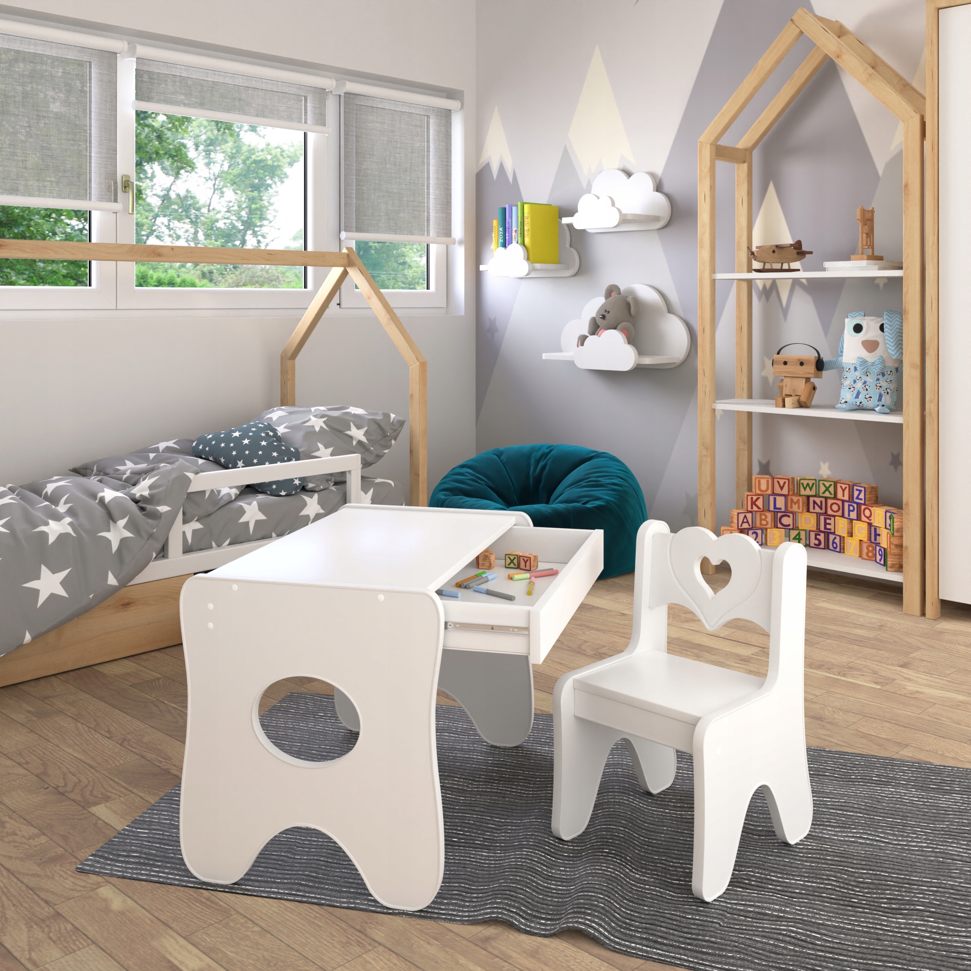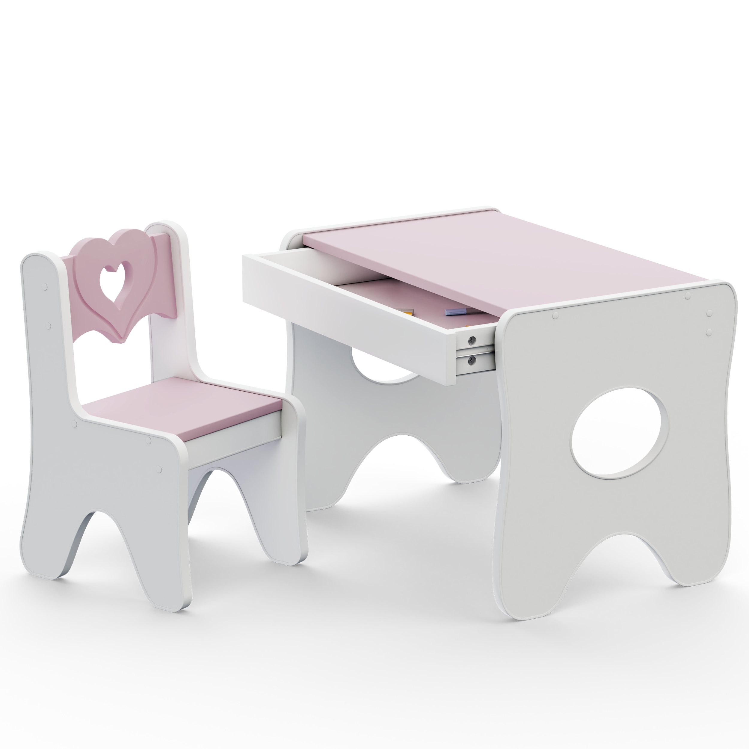 Уникальный стол и детский стульчик премиум-класса с очень практичным и вместительным выдвижной ящик.