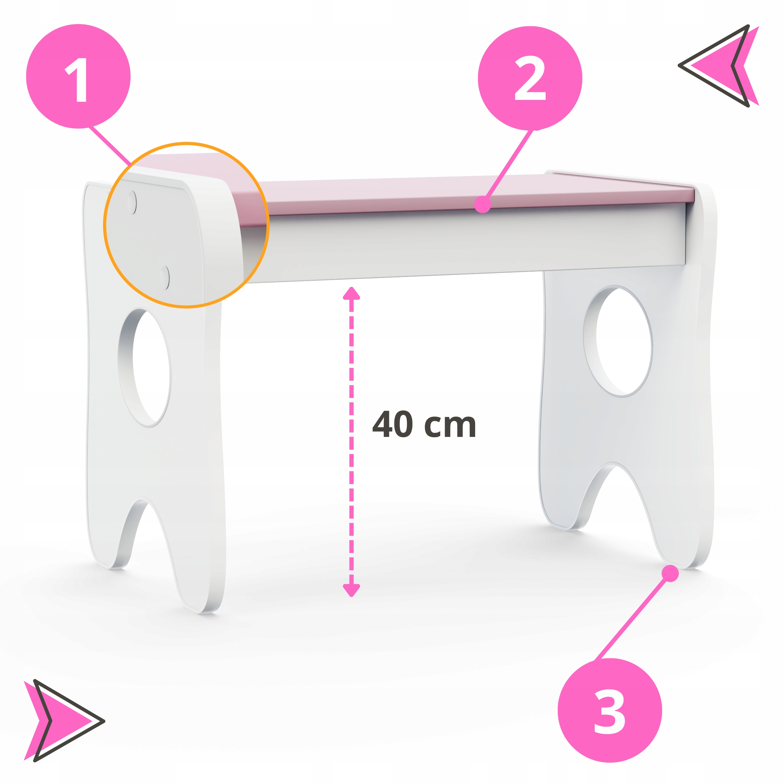 2. сиденье на высоте 28,5 см. Это оптимальное расстояние, позволяющее удобно расположить ноги ребенка.