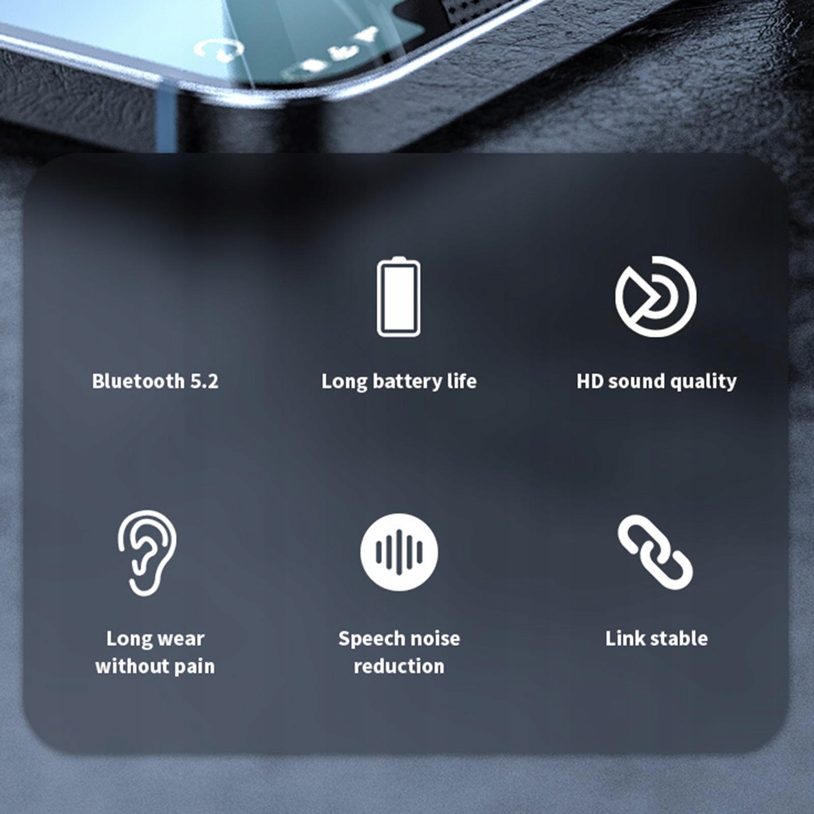 Bluetooth 5.2: беспроводное сопряжение с устройством длиной около 10 метров, оснащен микрофоном, Поддерживает музыку и различные соединения. Плотно прилегающий устойчив к пот, комбинезон на левое и правое ухо.