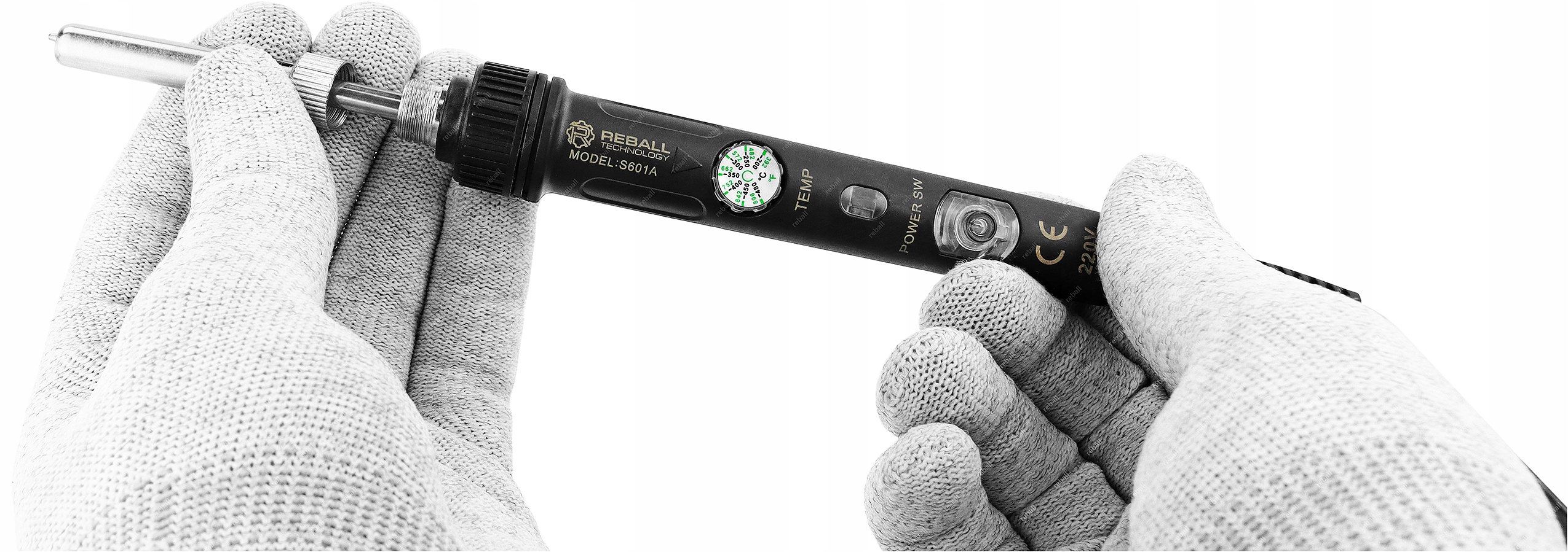 В паяльнике REBALL s601a регулировка температура возможна с помощью специальной ручки.