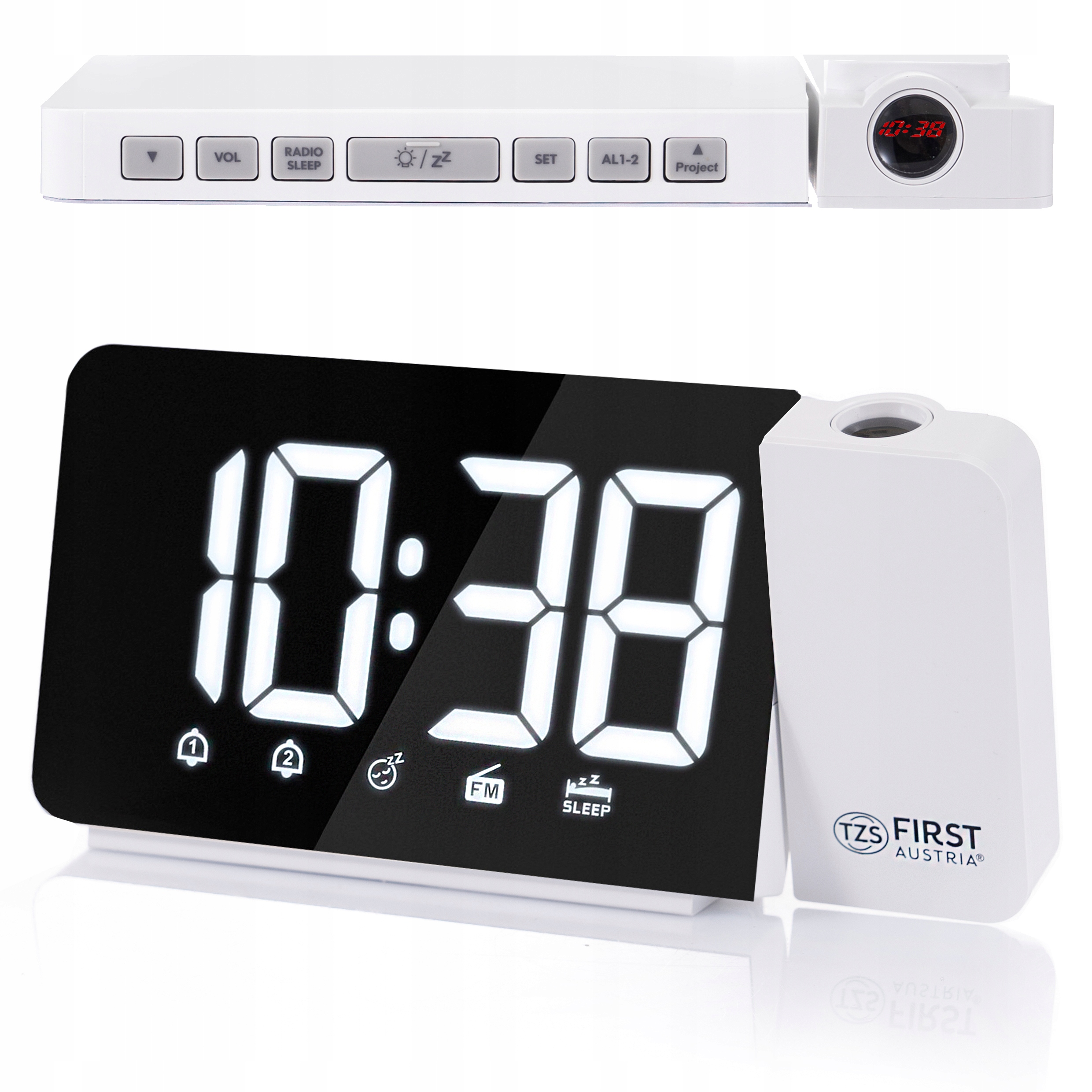 На на потолке показывайте время, или засыпайте у любой радиостанции, которая выключится после установленное время.