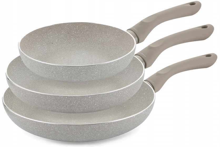 Patelnię Sandy pokryto wewnątrz powłoką nieprzywierającą, która jest pozbawiona szkodliwych związków. Do smażenia możesz używać minimalnej ilości tłuszczu. Jedzenie nie przywiera i nie przypala się. Dzięki zastosowanej powłoce patelnia jest wyjątkowo łatwa w czyszczeniu. Możesz zapomnieć o szorowaniu.