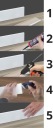 2. Rozprowadź klej montażowy w górnym wgłębieniu listwy w odstępach od 10-30 cm. Następnie dociskamy listwę do ściany. Po chwili odklejamy listwę.