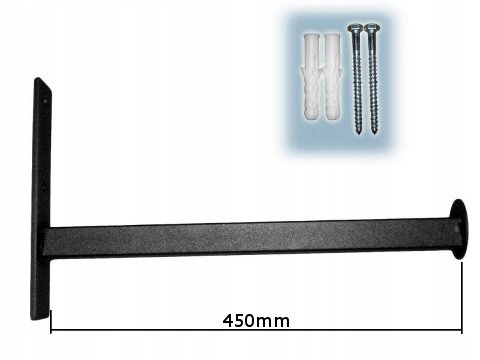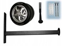 Wieszak służy do zawieszenia dwóch opon lub kół samochodowych. Ramię o długości 450mm wykonane jest z profila stalowego, zakończone krążkiem stalowym. Podstawa wykonana jest z płaskownika stalowego. Całość pomalowano lakierem proszkowym na kolor czarny mat. Dobór odpowiednich materiałów powoduje, że wieszak jest bardzo stabilny i estetycznie wykonany. Posłuży wiele lat i zapewni porządek w garażu.