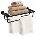 Wieszak łazienkowy Polis posiada dwa praktyczne drążki na ręczniki oraz dodatkową półkę, która umożliwia przechowywanie innych akcesoriów łazienkowych. Dzięki temu wieszakowi Twoja łazienka będzie zawsze schludna i uporządkowana.