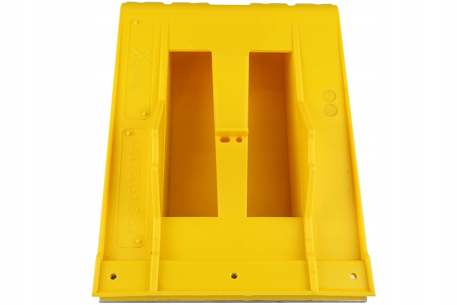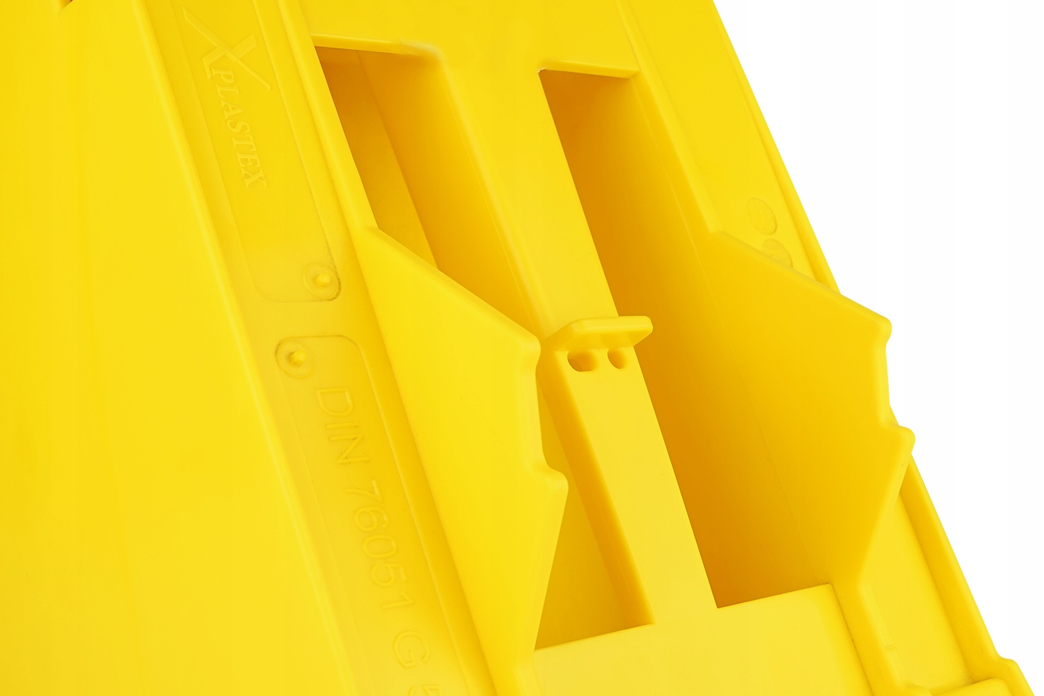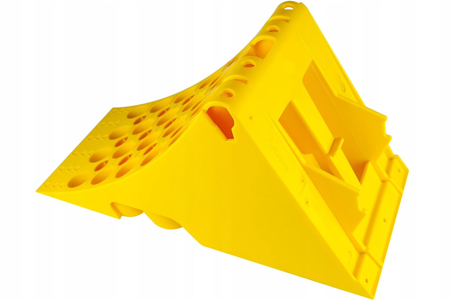 Produkt wykonany z dobrego jakości plastiku odpornego na pęknięcia, który z łatwością wytrzymuje opór koła przyczepki samochodowej z towarem lub samochodu osobowego na wzniesieniu. Konstrukcja klina pod koło samochodu jest przemyślana aby jak najlepiej sprostać oczekiwaniom klienta.