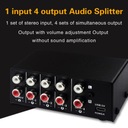 4-drożny stereofoniczny przełącznik audio Splitter, 1-in-4-out, dzieli jeden analogowy sygnał audio-wideo na wiele urządzeń.