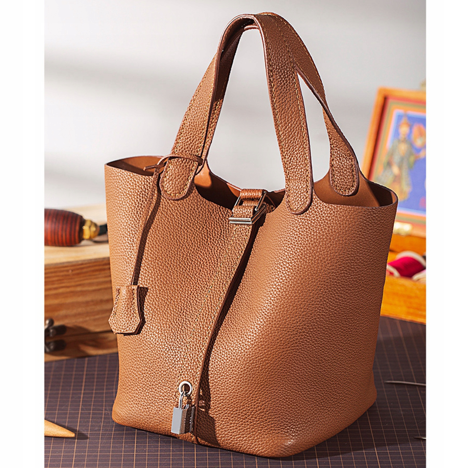Zestaw do robienia torebek DIY Skórzana torba wiadro Dno Shaper Rzemiosło skórzane Brązowy