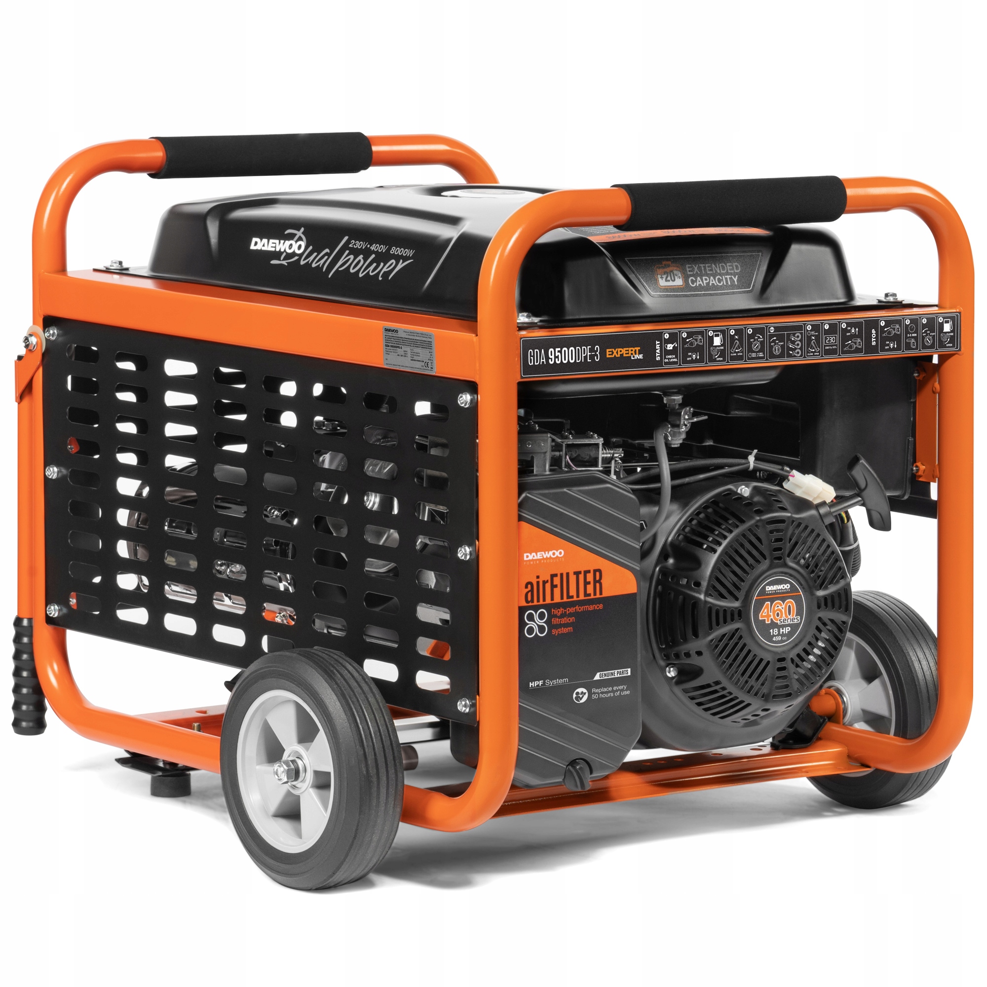 Генераторная установка DAEWOO GDA 9500DPE-3 оснащена инновационной технология DUAL POWER. Новая конструкция генератора позволяет производить одинаковую мощность в обоих режимах работы (230 В и 400 В), в то время как стандартные трехфазные генераторы обеспечивают не более чем 30% мощности в однофазной розетке.