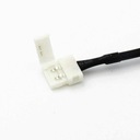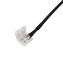 Ręcznie zaciskana złączka narożna z przewodem do taśm LED z 2 punktami lutowniczymi. Pozwala na szybkie łączenie taśmy LED o szerokości 10mm z kontrolerem / sterownikiem bądź kablem. Wystarczy odpowiednio umieścić taśmę oraz zamknąć zatrzask . Złączki można bez trudu zdjąć. Są wielokrotnego użycia. Złączkę można zacisnąć na taśmie LED zwykłej lub wodoodpornej (po wcześniejszym usunięciu osłony silikonowej).