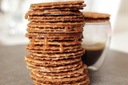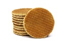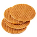 Oryginalne wafle holenderskie z nadzieniem karmelowym. Idealnie smakują gdy na chwilę przed zjedzeniem przykryjesz nimi kubek z gorącą kawą lub ulubioną herbatą.