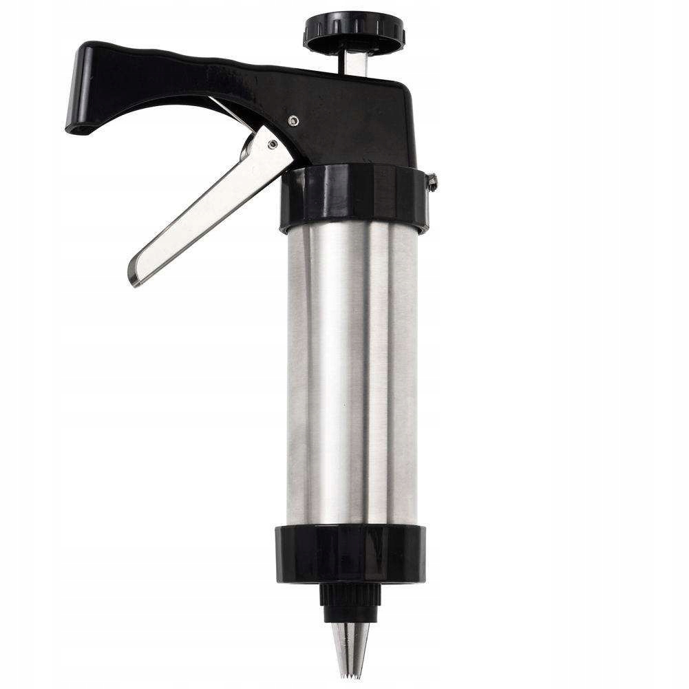 Wykonany z wysokiej jakości stali polerowanej. Wyposażony w 8 tarcz do ciastek oraz 8 dysz, które umożliwiają dekorację słodkich przysmaków. Łatwy w czyszczeniu i w obsłudze. Dekorator możesz wypełnić pysznym kremem do wypełnienia ciastek, ale także musztardą czy majonezem. Doskonale się sprawdzi podczas świątecznych wypieków.