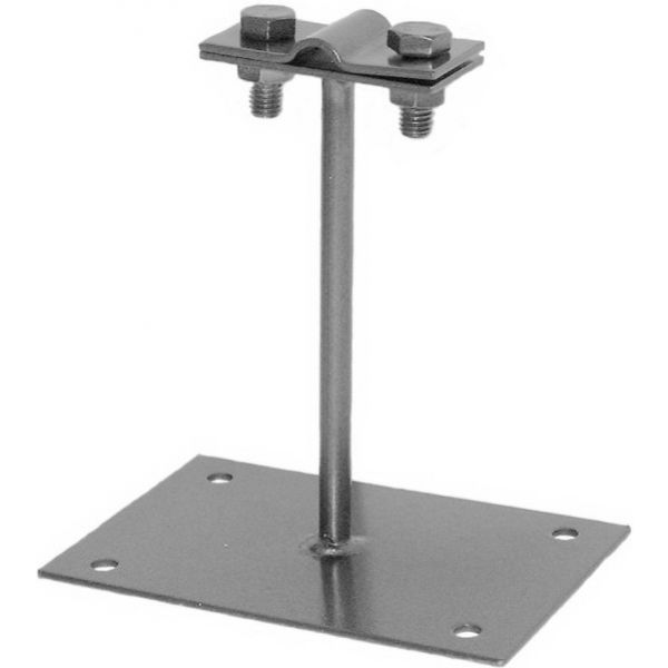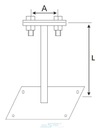 Trzon uchwytu wspornika wykonany z pręta fi 8 mm. Podstawa wykonana z blachy o wymiarach 125 x 85 x 2 mm. Zaczep prosty służy do mocowania płaskownika jako zwodu. Całość ocynkowana ogniowo.