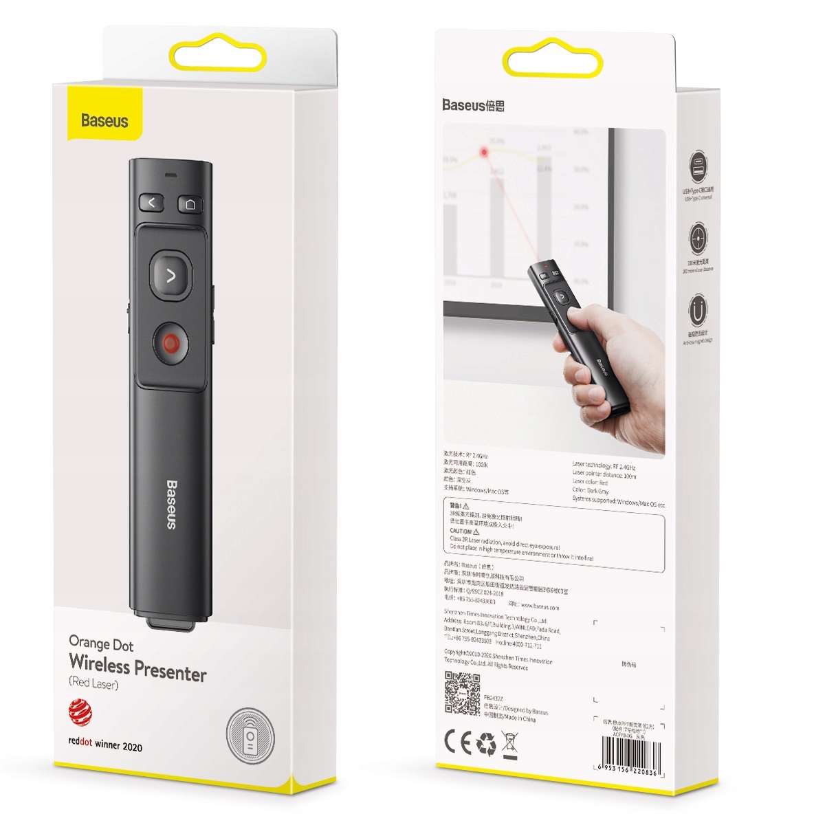 Laserowy pilot został zaprojektowany tak, aby doskonale pasować do dłoni, a jego miękka, gumowa powierzchnia i chropowate przyciski zapewniają pewny chwyt podczas prezentacji.