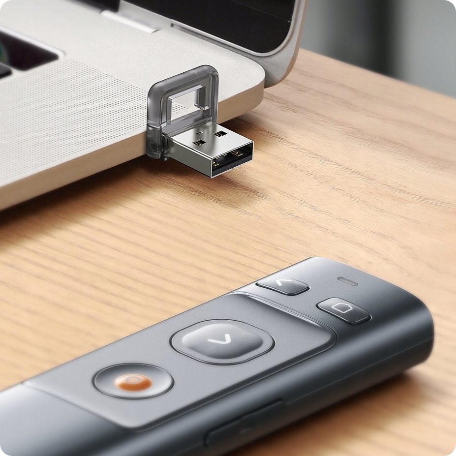 Osiągnij maksimum ze swojej prezentacji dzięki pilotowi do zdalnego sterowania. Poruszaj się bez przeszkód, zmieniaj slajdy z odległości nawet 100 metrów i używaj wskaźnika laserowego do prezentacji szczegółów.