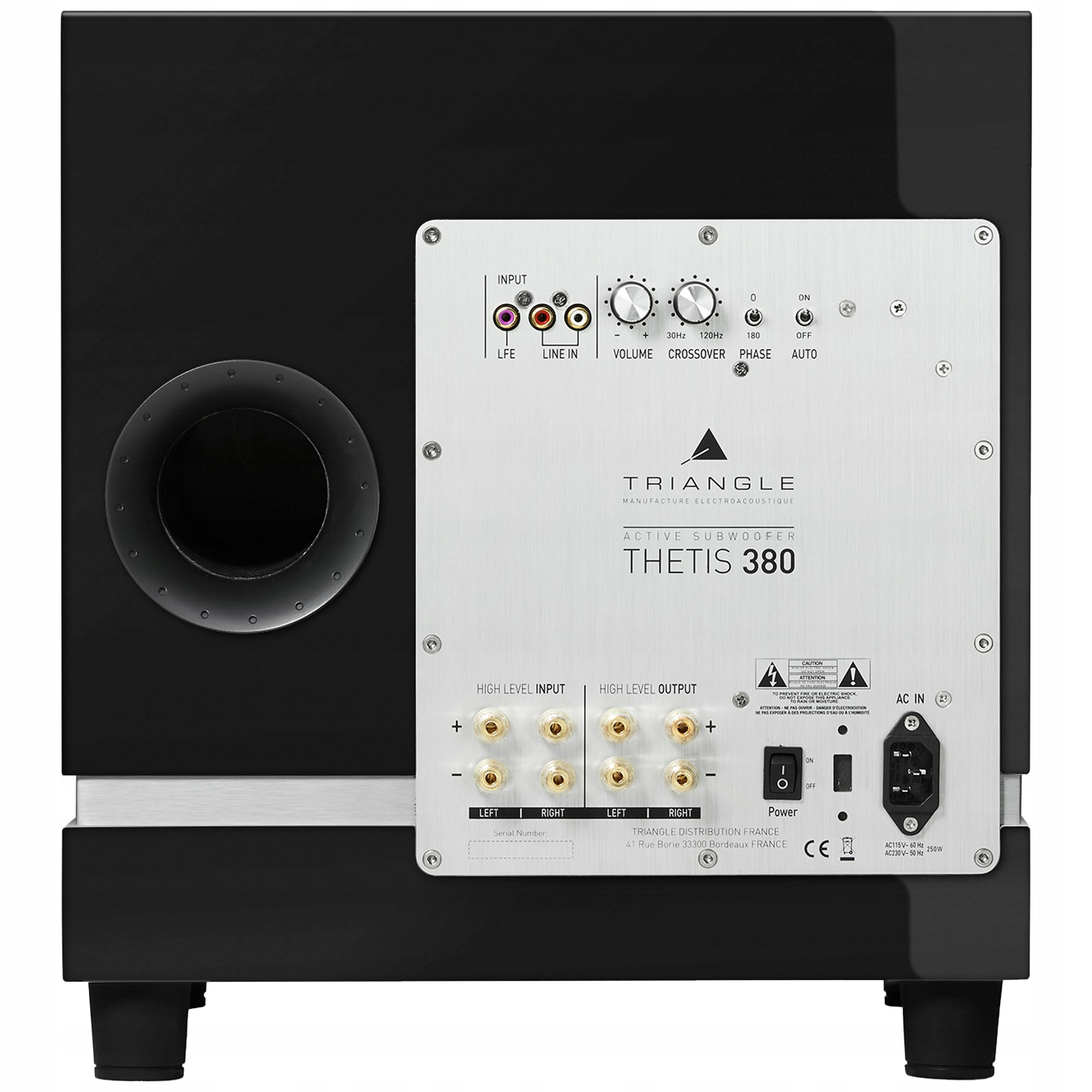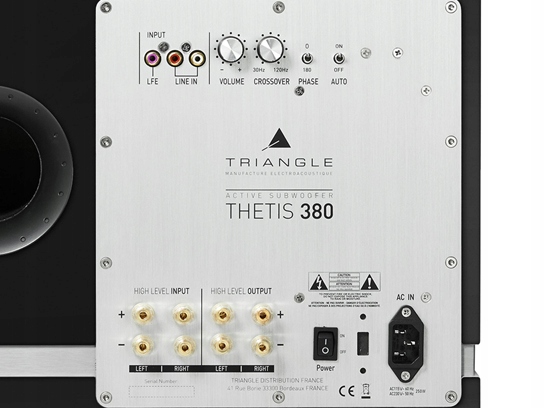 Subwoofer Thetis 380 wyposażono w 12-calowy, skierowany w dół głośnik niskotonowy, napędzany wzmacniaczem pracującym w klasie D i oferującym prawdziwe 350W mocy wyjściowej (500W mocy szczytowej).