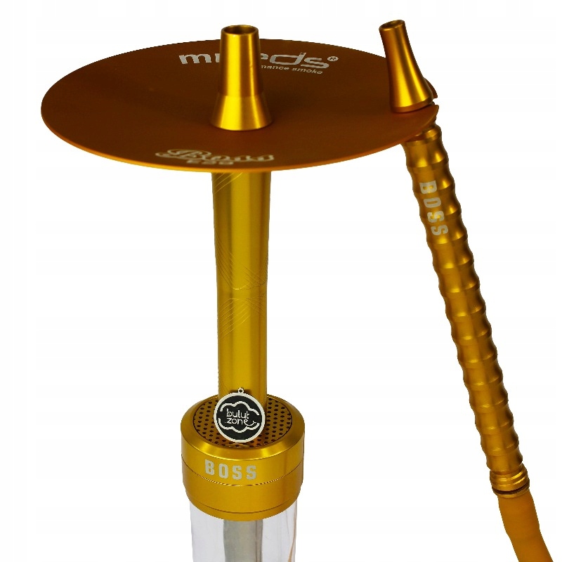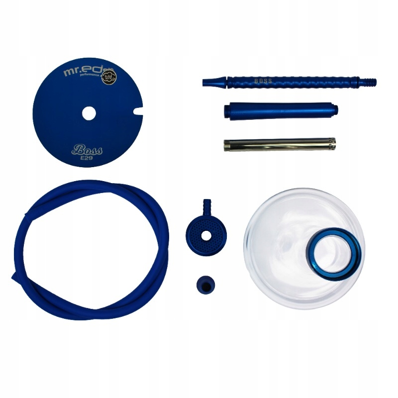 BOSS E29 поставляется с легким в уходе силиконовым шлангом и алюминиевая ручка. Мундштук имеет небольшой паз, поэтому его можно повесить на лоток (также подготовленной для подвешивания мундштука со шлангом). Таким образом, можно элегантно выставить кальян.