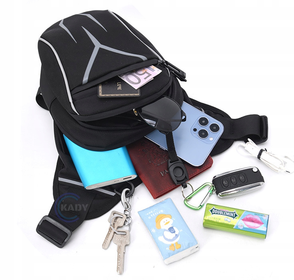 ✅Wzór na saszetce wykonany z dodatkami Fluorescencyjnymi , wspomagające widoczność motocyklisty . Bardzo ważne podczas postoju.