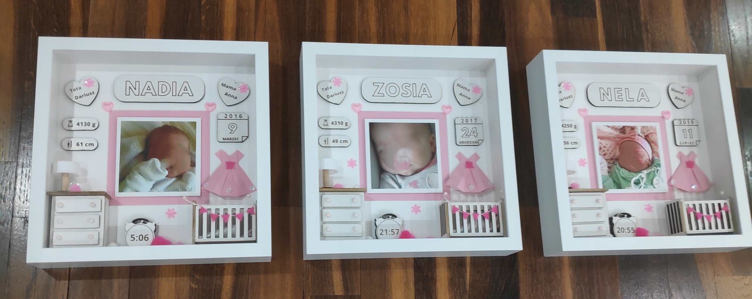 Wszystkie ramki są wykonywane ręcznie tak więc mogą się różnić od siebie, ale dzięki temu możemy wykonać je dokładnie według Waszych potrzeb i wytycznych. Możemy dołożyć teks, wiersz, dedykacje lub inne informacje jakie nam podeślecie.