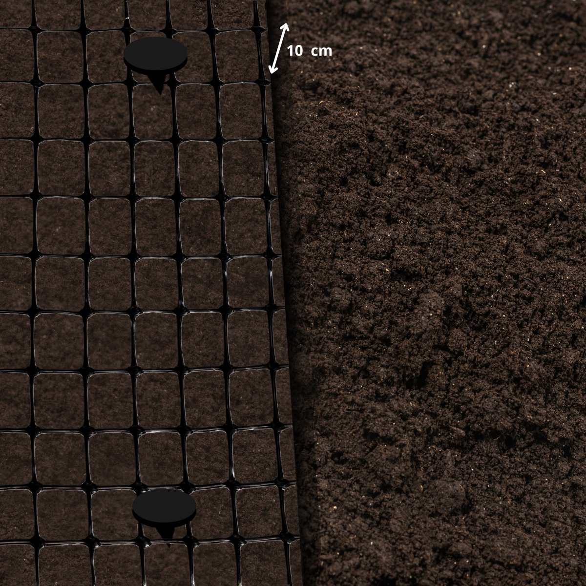 Siatka składa się z gęsto tkanych oczek i wyróżnia się wysoką wytrzymałością i odpornością na wilgoć oraz rozerwanie. Kwadratowe oczka o wymiarach 16x16 mm wspierają naturalny rozrost systemu korzeniowego trawy oraz innych roślin.