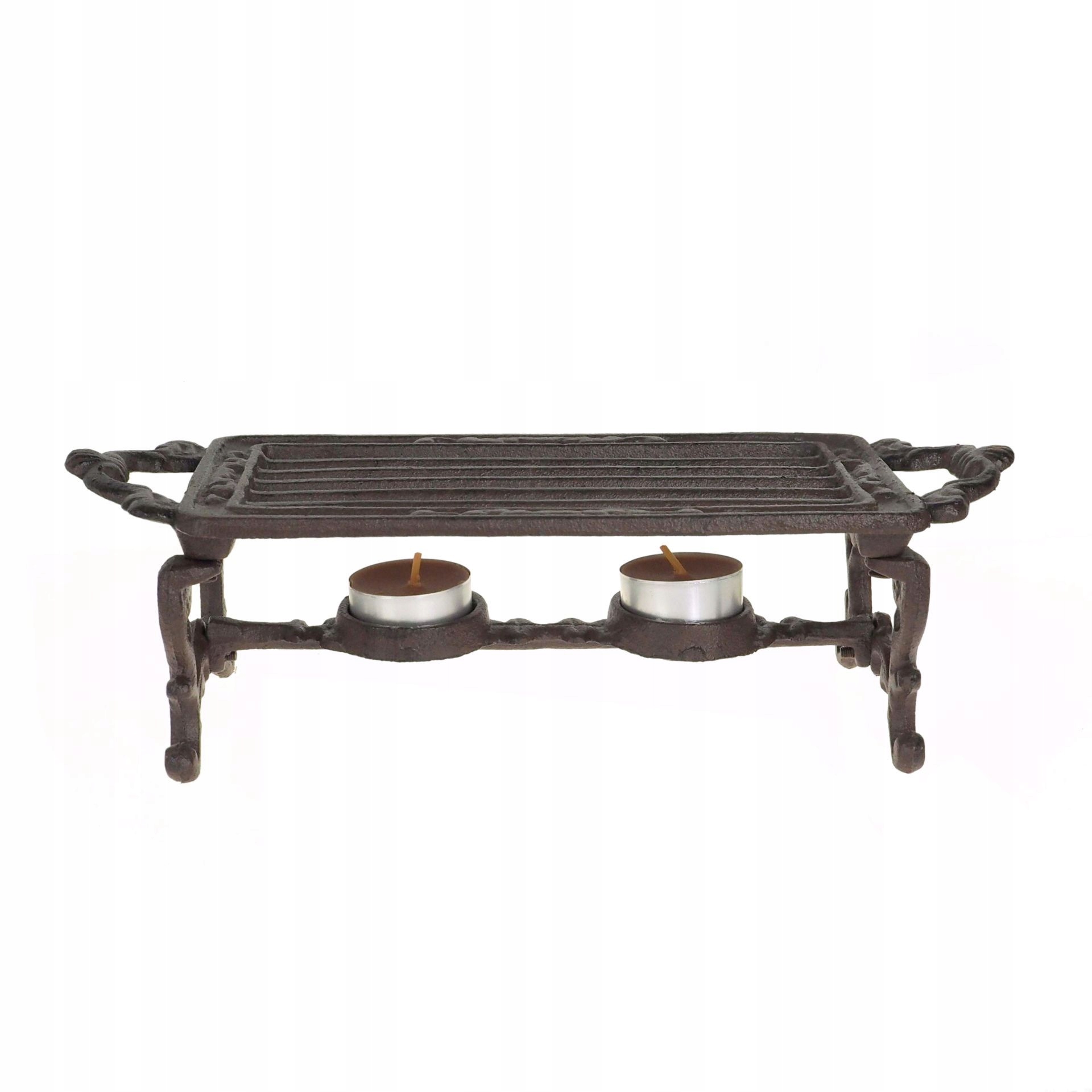 Этот прямоугольный нагреватель классической формы с держателем для двух свечей он сохранит тепло в огнеупорных мисках и чайниках.