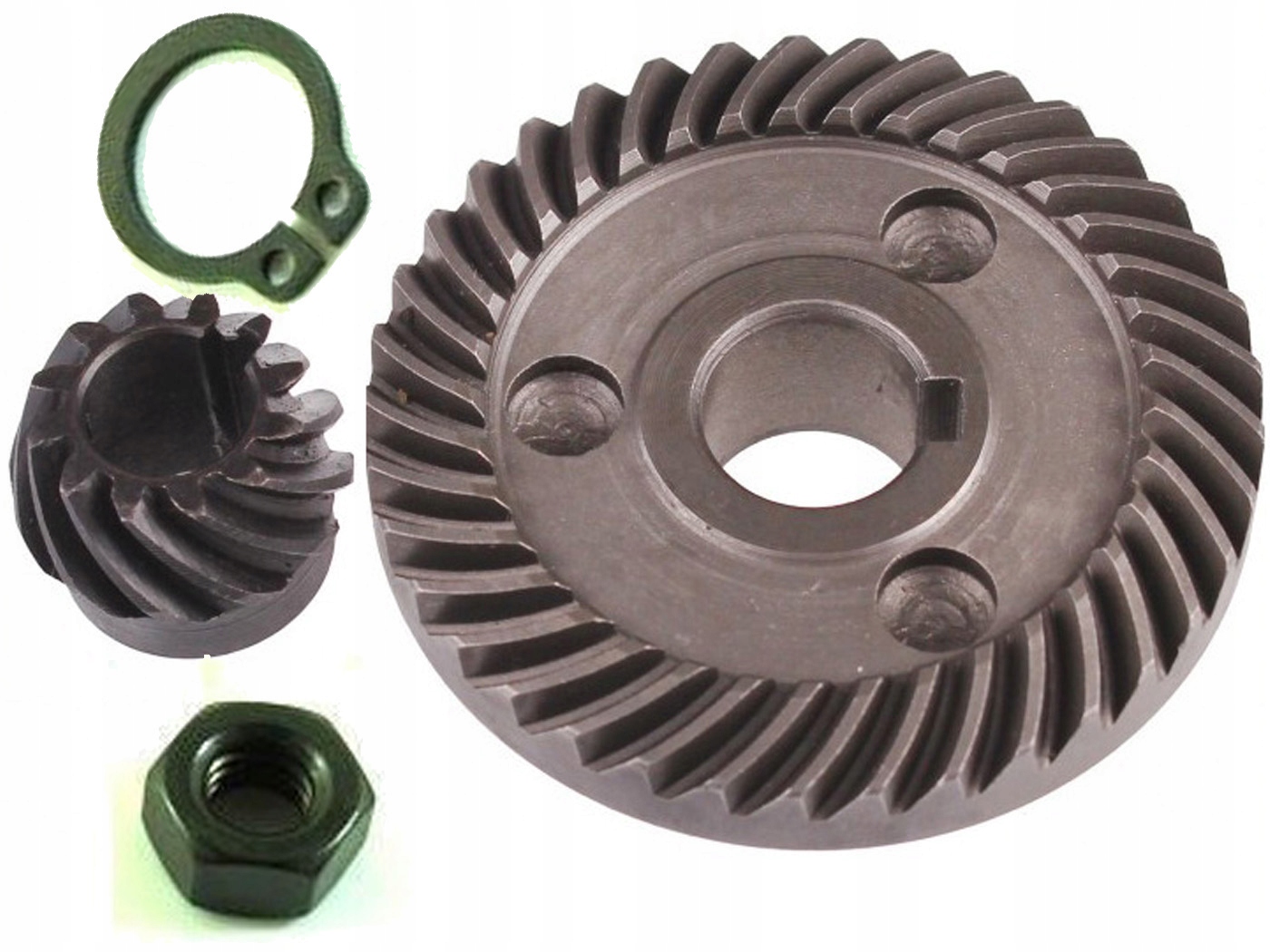 ZESTAW: przekładnia zębata, zeger (zabezpieczenie dużej zębatki), nakrętka na wirnik