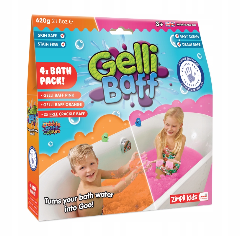 · Przebadany dermatologicznie i bezpieczny dla skóry dziecka – otrzymał akredytację od British Skin Foundation (BSF), wiodącej brytyjskiej organizacji zajmującej się badaniem chorób skóry. Po dogłębnej analizie BSF uznała Gelli za całkowicie bezpieczne dla skóry; firma dermatologiczna Dermatest regularnie przeprowadza testy płatkowe skóry wszystkich produktów Zimpli Kids.