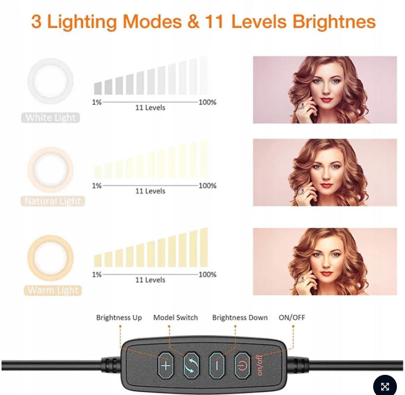 Lampa pierścieniowa z kablem do ładowania USB umożliwia podłączenie jej do dowolnego gniazdka USB: laptopa, komputera, komputera PC, power banku, ładowarki z gniazdem USB itp. Wygodna do użytku w pomieszczeniach lub na zewnątrz