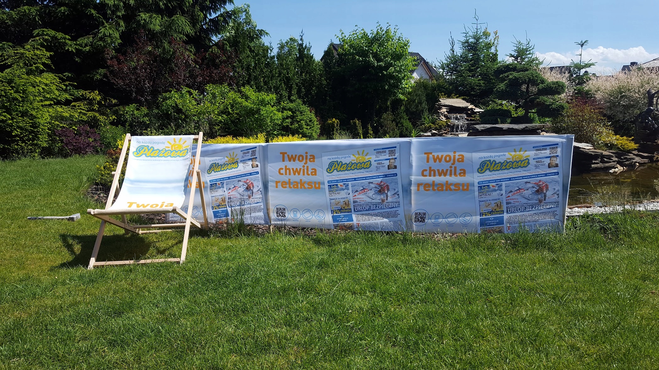 Parawan plażowy z dowolnym nadrukiem w rozmiarze 300x75cm.
