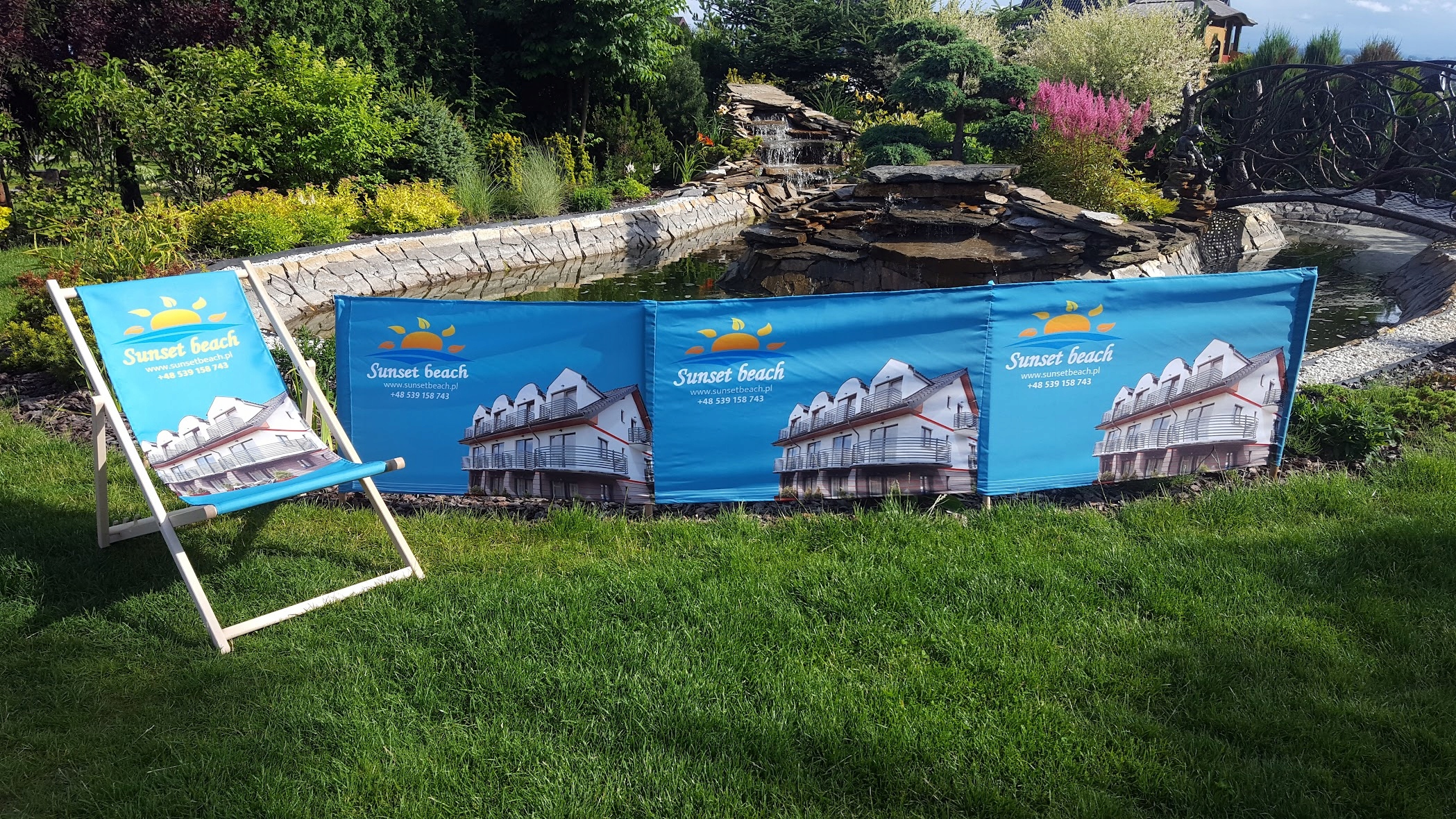 Parawany reklamowe to hit obecnego sezonu, bo łączy walory promocyjne i użytkowe, zwiększa bezpieczeństwo plażowania. Na parawanie możemy zadrukować logo Twojego obiektu noclegowego, firmy lub inną grafikę i to w pełnym kolorze.Wszystkie parawany plażowe z nadrukiem posiadają bardzo dobrą jakość (produkcja polska) i promocyjną cenę, bo jesteśmy producentem.