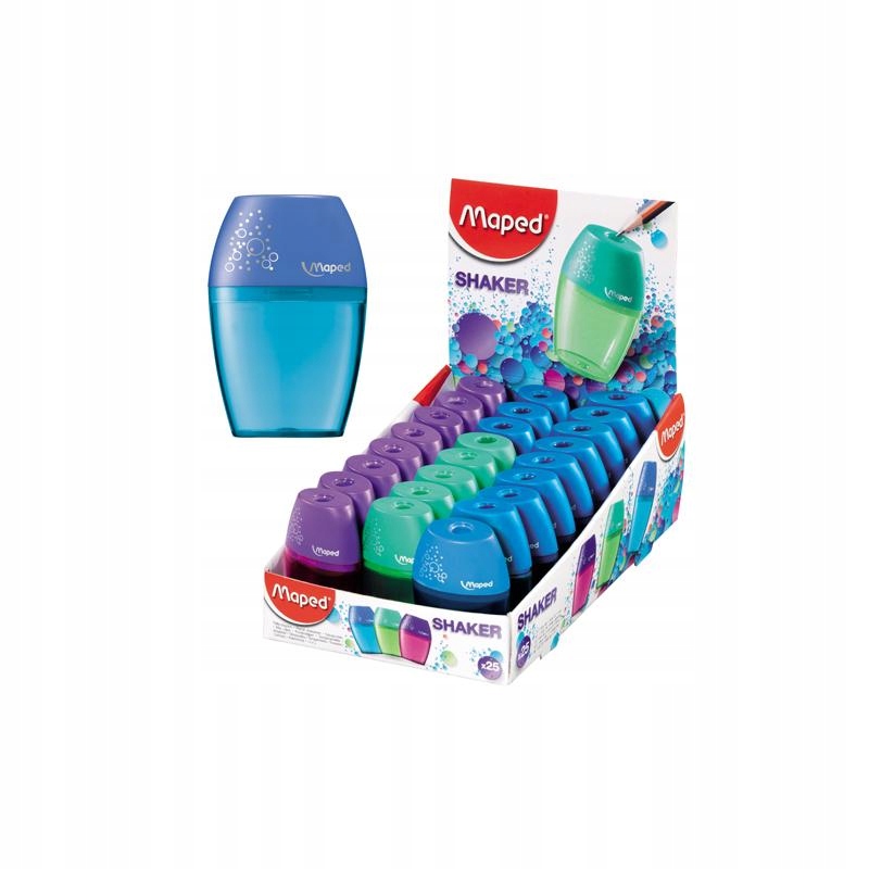 Plastikowa temperówka SHAKER z jednym otworem i obszernym pojemnikiem na ścinki. Miks kolorów; różowy, zielony, niebieski