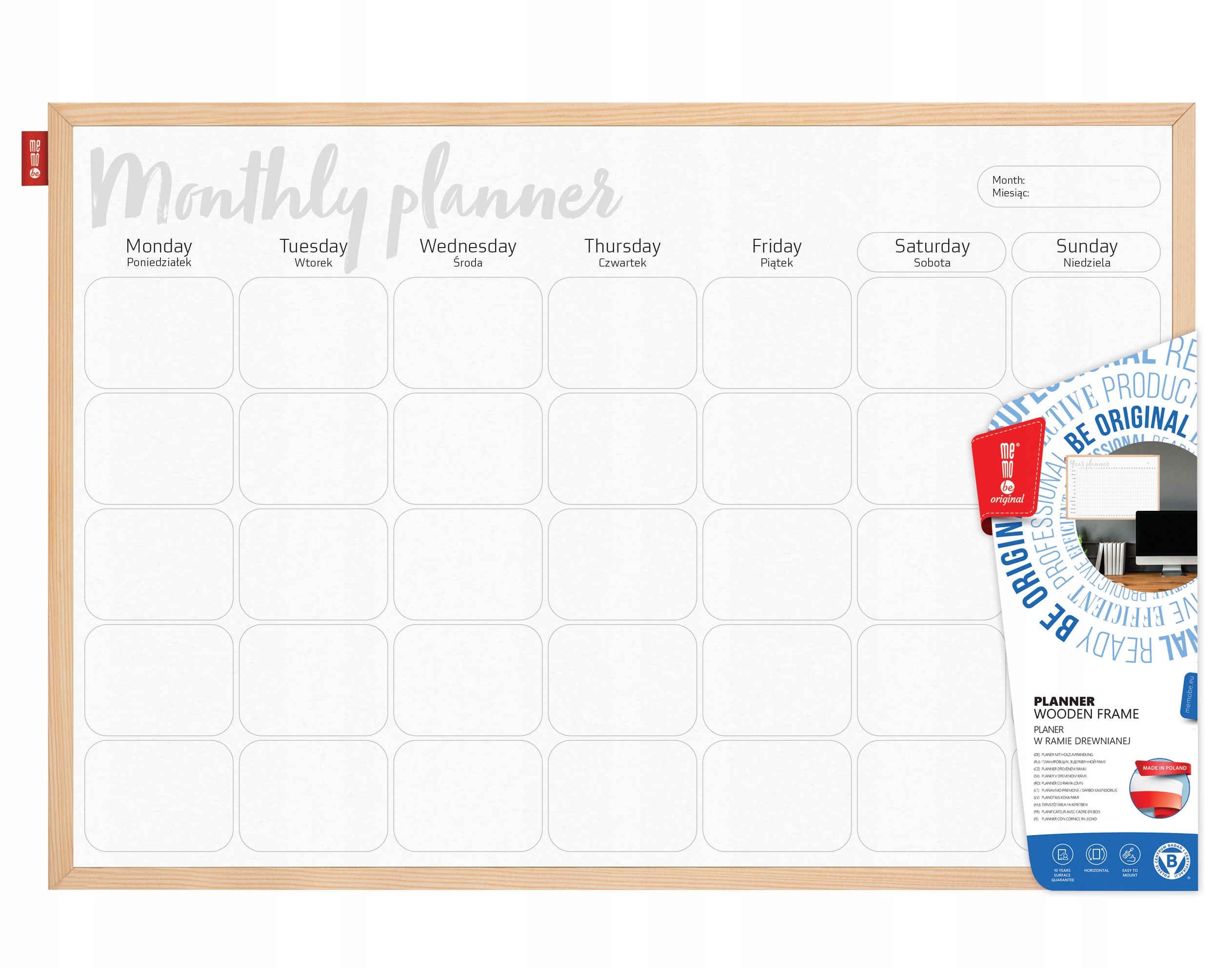 Tablica planer MemoBe w ramie drewnianej (z nadrukiem w kolorze czarnym, model 5).