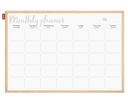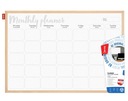 Tablica z powierzchnią suchościeralno-magnetyczną z nadrukowanym terminarzem do planowania zadań miesięcznych.