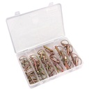 Zestaw 50 sztuk przetyczek rolniczych. Służy jako zabezpieczenie sworzni lub zatyczki belki. Zawiera najbardziej popularne rozmiary. Pakowane w przezroczysty organizer z przegródkami do sortowania i łatwego przechowywania.