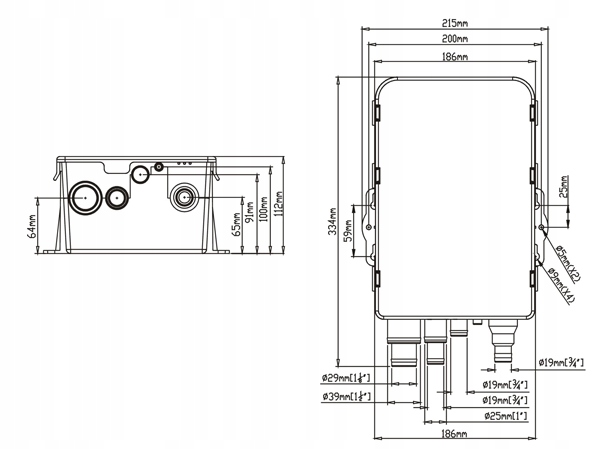 Pompa prysznicowa z łatwo zdejmowalną uszczelnioną pokrywą. Wyjście pompy z zaworem zwrotnym, zapobiega cofaniu się wody do studzienki.