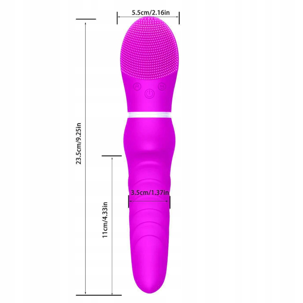 Duży wibrator punktu G oraz masażer soniczny w jednym. Nowoczesny gadżet erotyczny, który zapewni Ci niesamowite przeżycia. Urządzenie składa się z dwóch części, które mogą być używane niezależnie od siebie. Rękojeść wibratora jest odkręcana dzięki czemu może być stosowana oddzielnie do stymulacji łechtaczki, podczas gdy druga część będzie dogłębnie penetrować twoją szparkę lub anusa. Wibrator posiada wbudowany akumulator ładowany za pomocą kabla USB. Urządzenie zostało wykonane z silikonu medycznego, dzięki czemu jest bezpieczne, przyjemne w dotyku oraz łatwe do utrzymania w czystości.