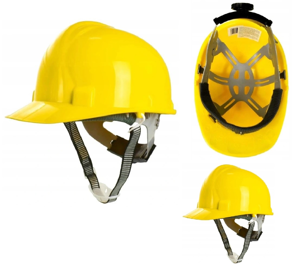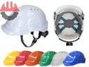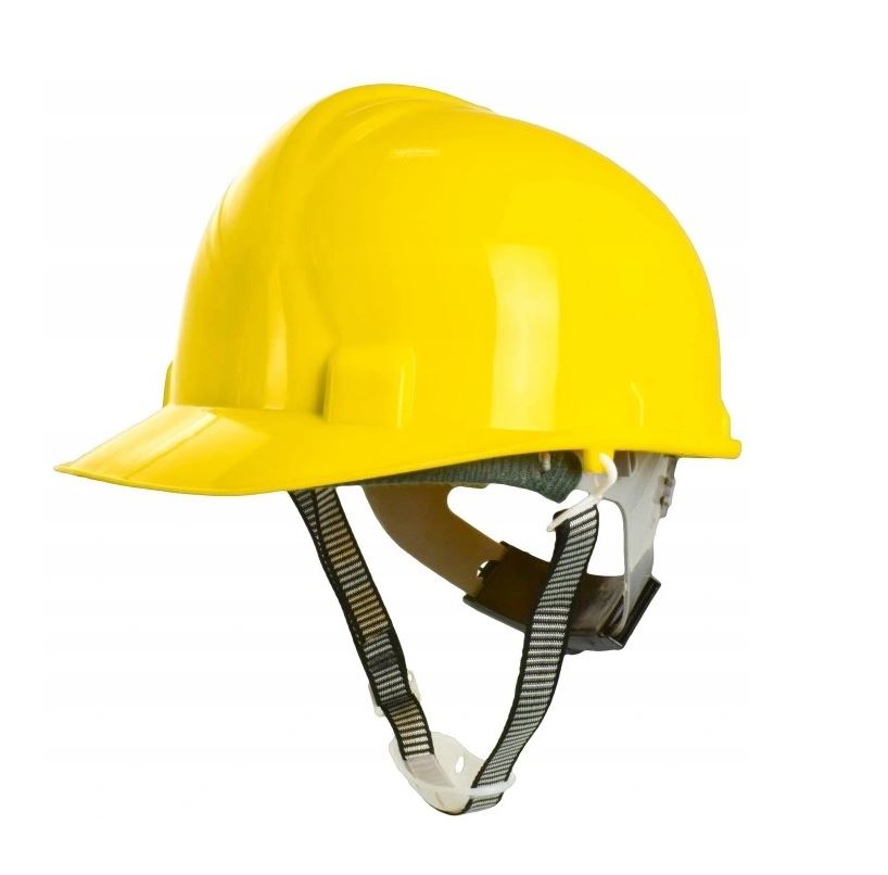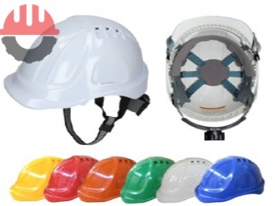 Przemysłowy hełm ochronny z wentylacją, wykonany z polietylenu o dużej gęstości (HDPE).